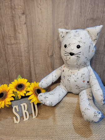 This version of the memory cat includes the original shirt/clothing item only. Special items can be added, such as a bow around the neck or ear, a bow-tie, or flower/bow on ear. Other options available upon request.